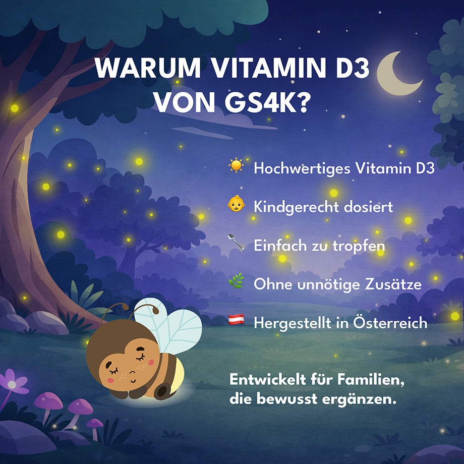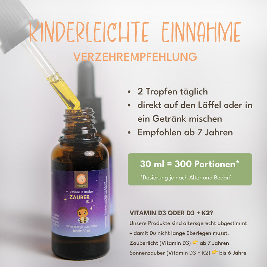 Gerade in den Wintermonaten oder bei wenig Sonnenlicht kann es sinnvoll sein, Vitamin D3 zu ergänzen – auch bei Kindern.