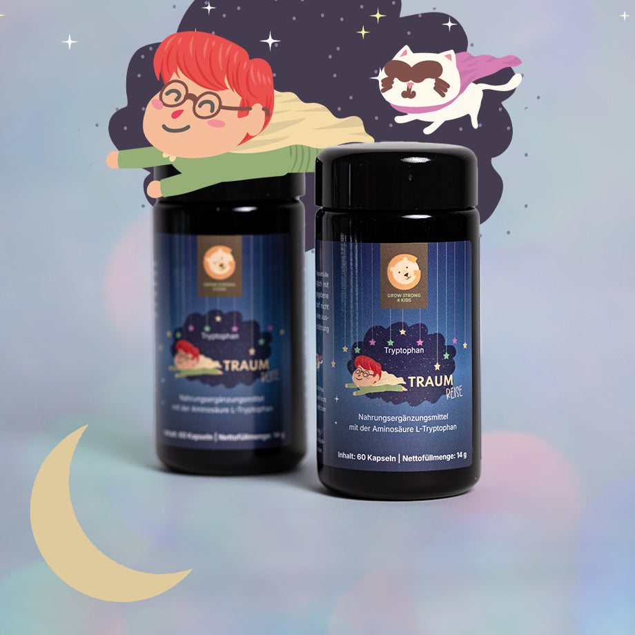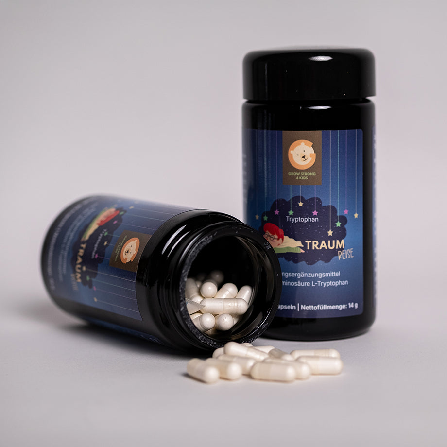 Wenn das Gedankenkarussell nicht stillsteht oder Einschlafen schwerfĂ€llt, hilft unsere Traumreise. L-Tryptophan ist eine essentielle AminosĂ€ure, die der Körper in das Schlafhormon Melatonin umwandelt â ganz natĂŒrlich.